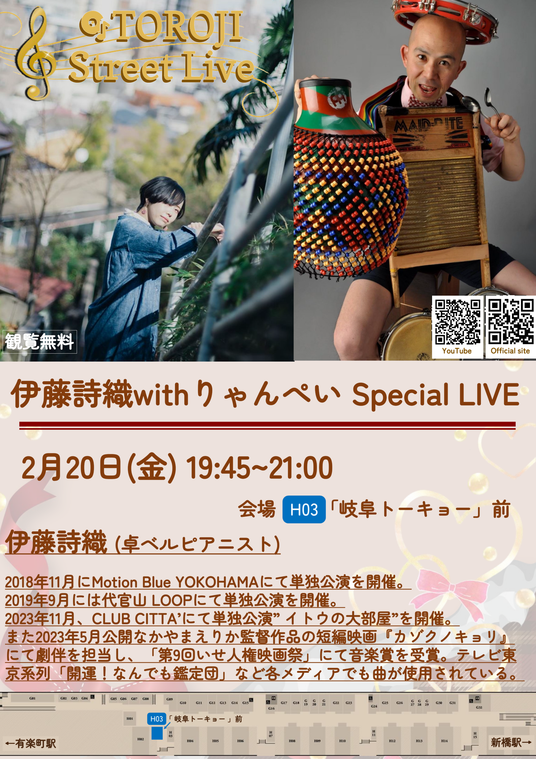 「東京ストリートピアノフェスティバル」のオープニングアクトとして日比谷OKUROJI出演が決定いたしました!その後はそのままOTOROJI Street LiveにDrumりゃんぺいさんと出演です! 時間 【東京ストリー … 続きを読む 東京ストリートピアノフェスティバル & OTOROJI Street Live